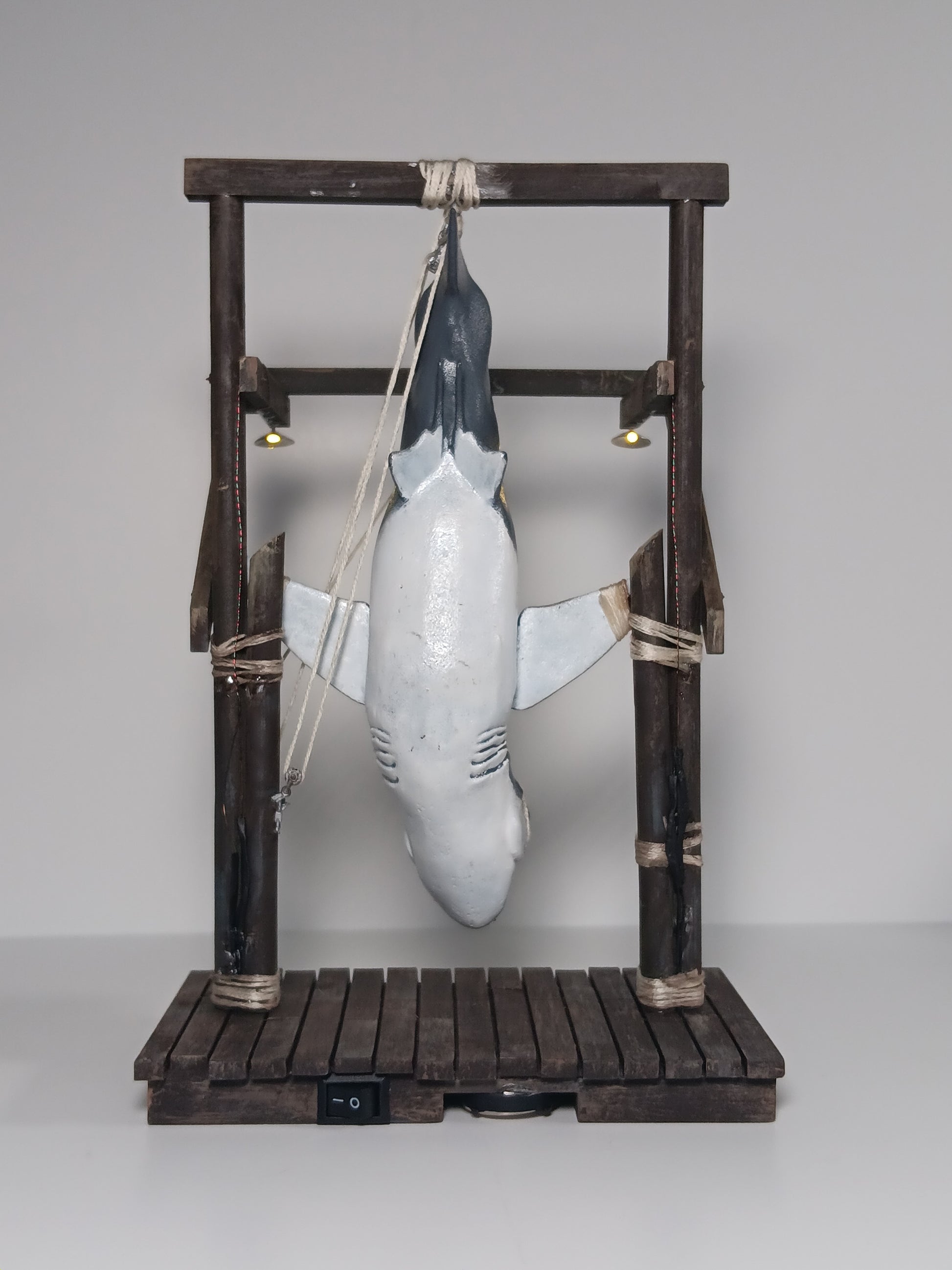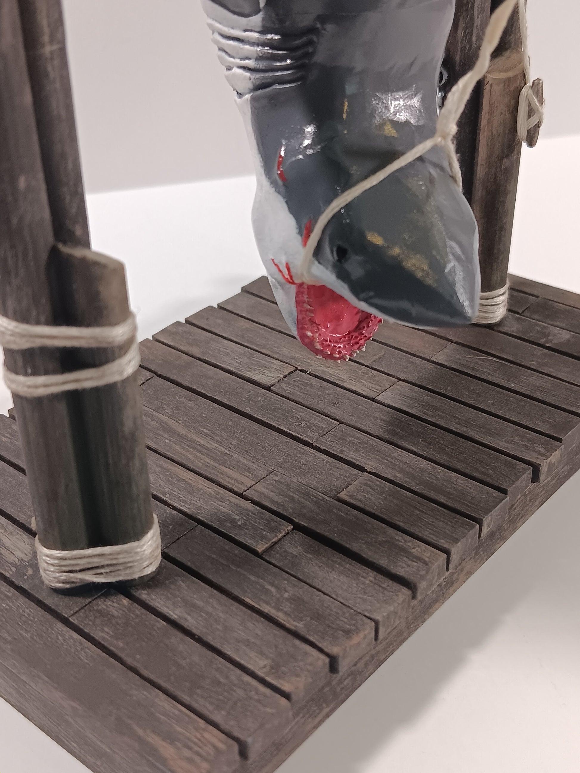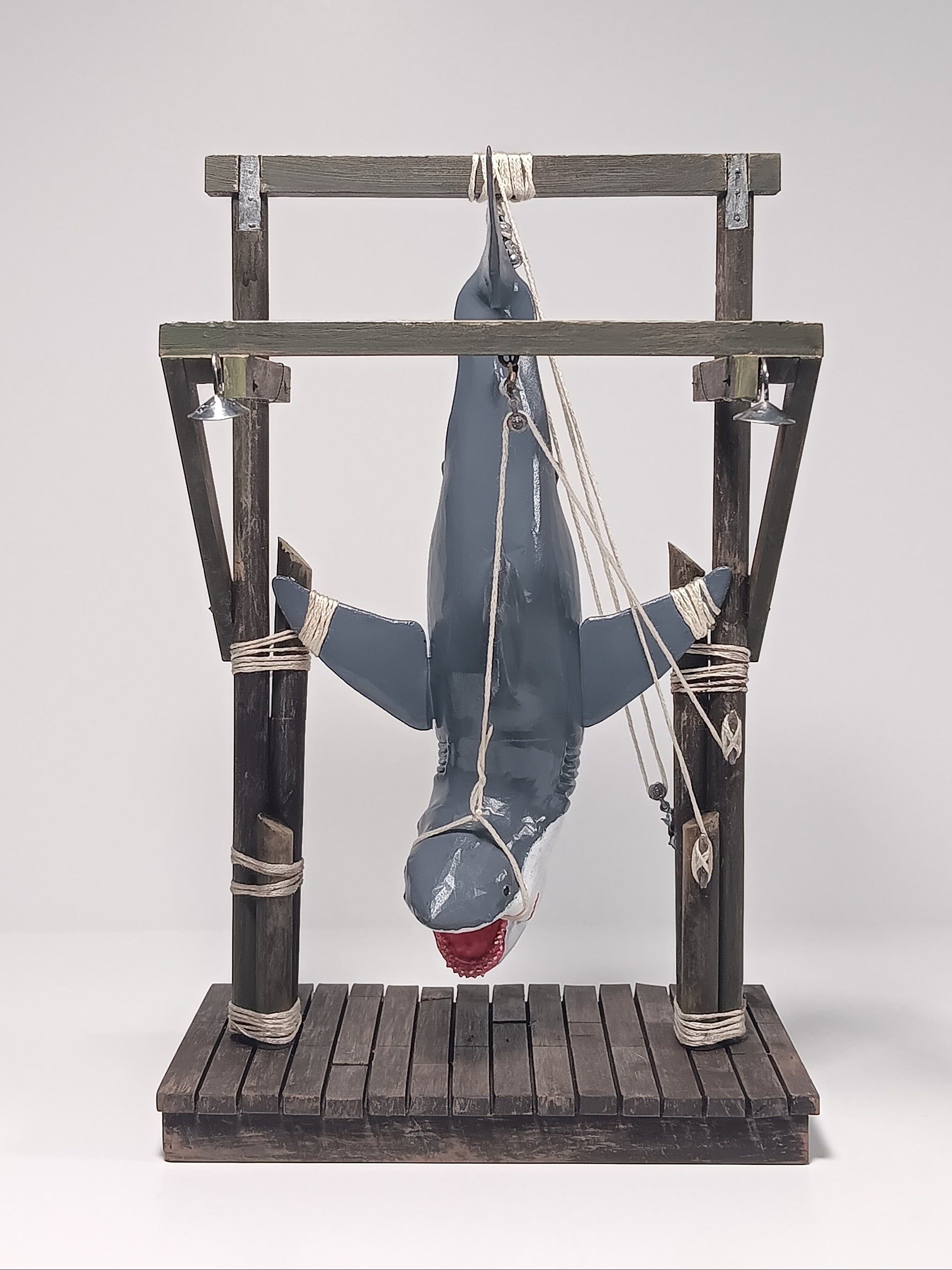 There is a small town off the coast, that was hunted by a 25-foot Great White Shark! Three brave men captured that ole shark and displayed him for the whole town to see. Now YOU can display your own shark, and tell the tale, with our Catch of the Day miniature statue.